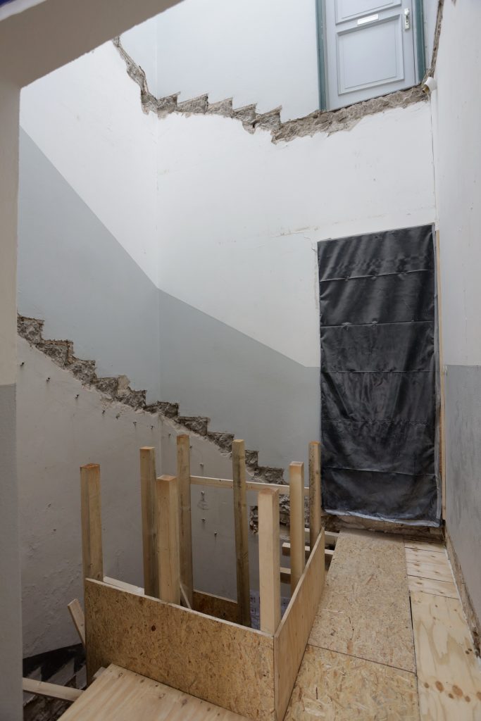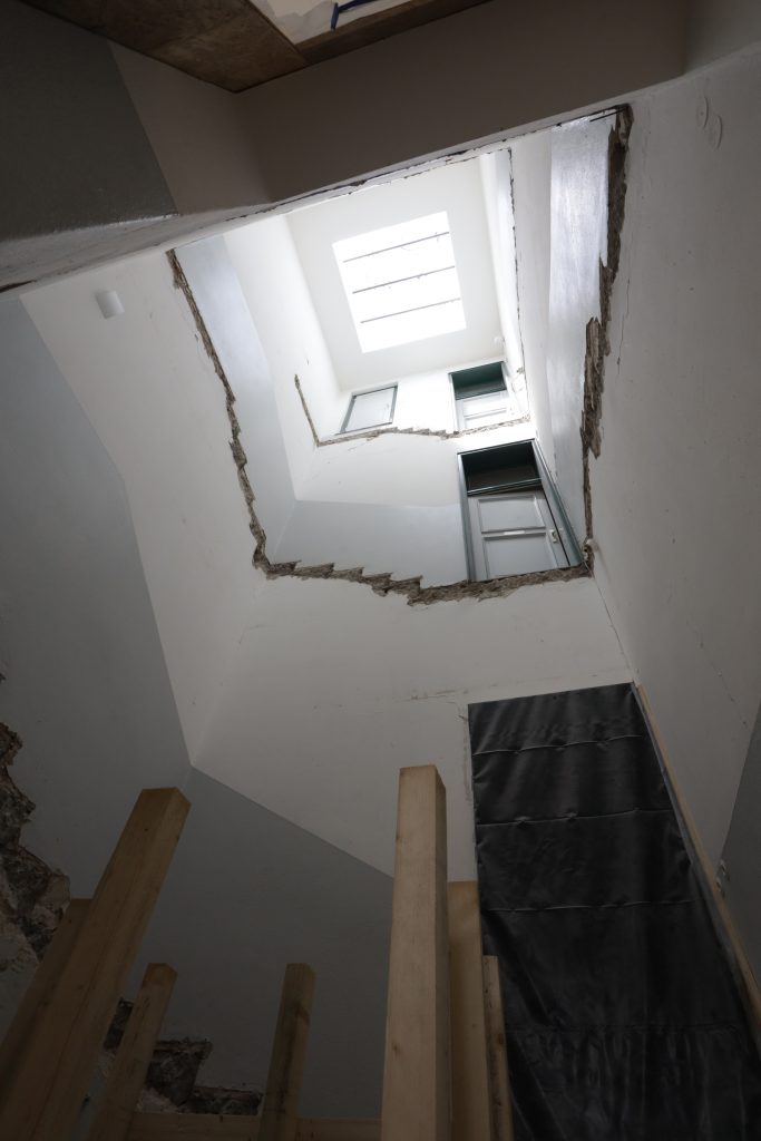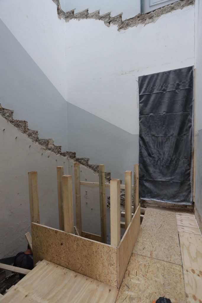 Neue Treppe und neuer Aufzug